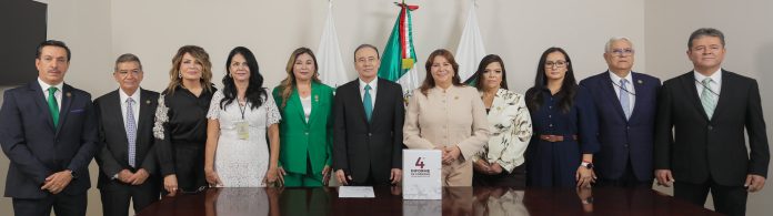 En compañía de la diputada Jazmín Guadalupe Gómez Lizárraga (PT), presidenta de la Comisión de Régimen Interno y Concertación Política (Cricp), la diputada presidenta destacó que la entrega del informe se realiza en cumplimiento de los artículos 46 y 79, fracción octava, de la Constitución local, y subrayó que el congreso lo analizará con responsabilidad y atención.