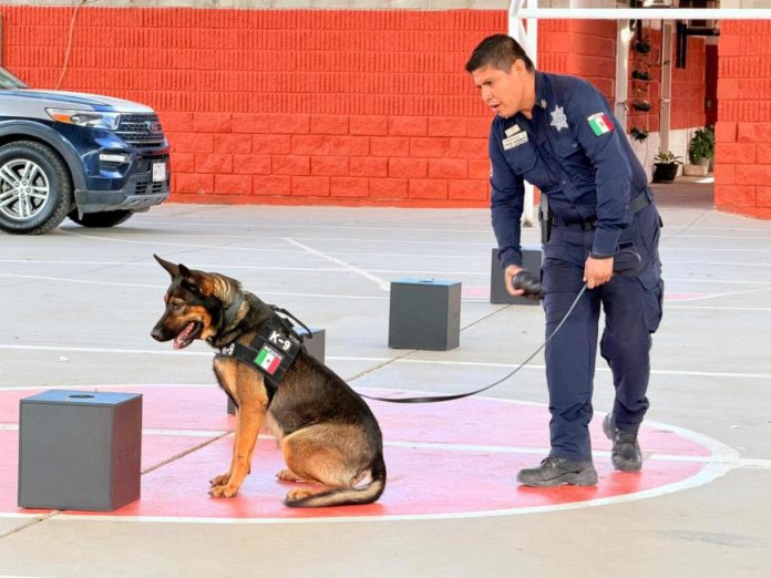 Hermosillo, Sonora; 26 de octubre de 2025.- Binomios caninos de la unidad K-9 y la división de Proximidad Ciudadana de la Policía Estatal de Seguridad Pública (PESP) realizan acciones para la prevención del delito en actividades de acercamiento con las familias de la colonia los Olivos en Hermosillo.