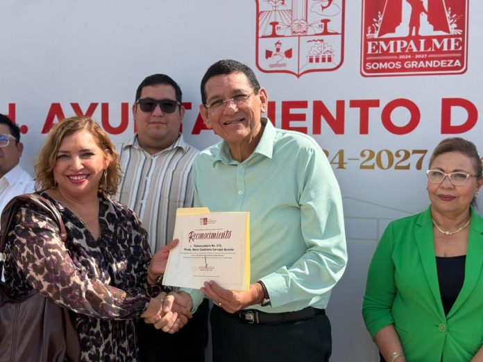El acto estuvo encabezado por el alcalde Luis Fuentes Aguilar y su esposa Xóchitl María Mejía, presidenta del Sistema DIF Empalme, quienes estuvieron acompañados por autoridades municipales, educativas, alumnos y padres de familia.